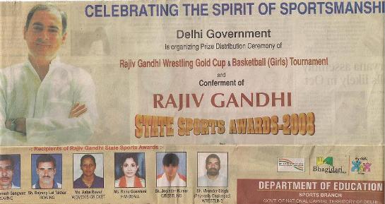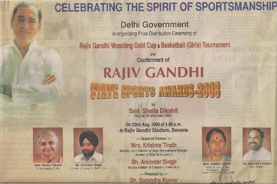 Renu Goswami of Handball received Rajiv Gandhi State Sports Award